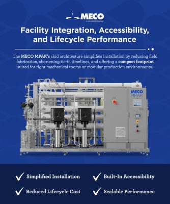 MECO’s membrane-based WFI platforms — including solutions like the MECO MPAK — bring together pretreatment, RO, EDI, and advanced sanitization into a unified system designed for performance, efficiency, and regulatory confidence across scales.
